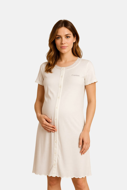 Camicia da notte pre-post parto mezza manica con taglio incrociato e pizzo