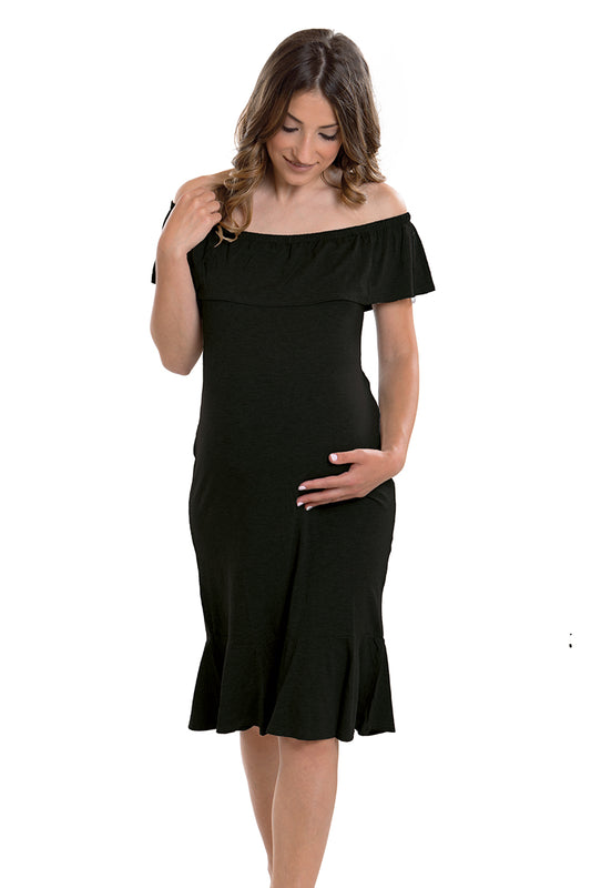 Vestito premaman con scollo omerale e balza sul fondo