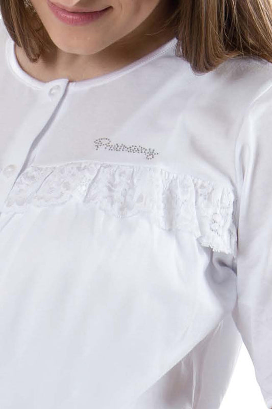 Camicia da notte pre-post parto manica 3/4 con pizzo macramè