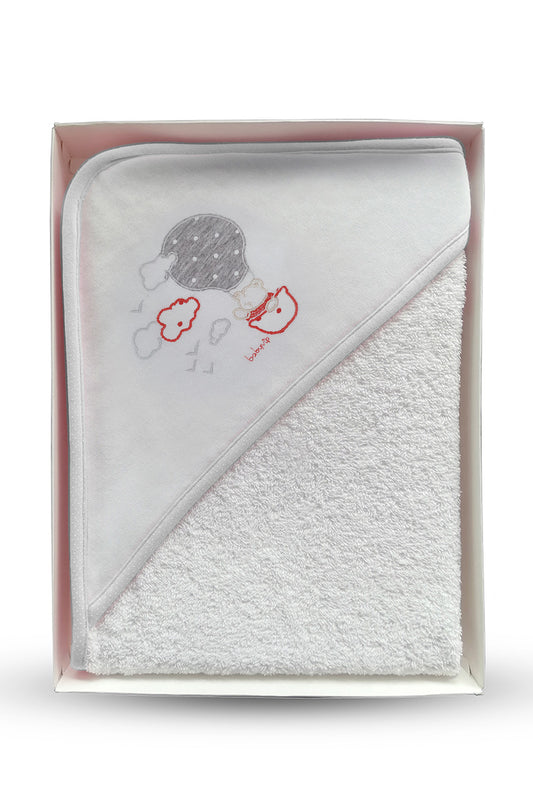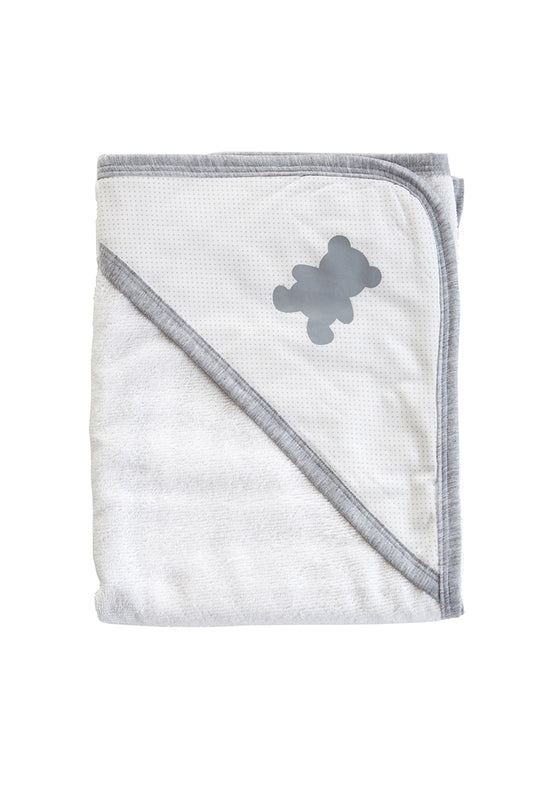 Accappatoio a triangolo con stampa orsetto e profili in contrasto