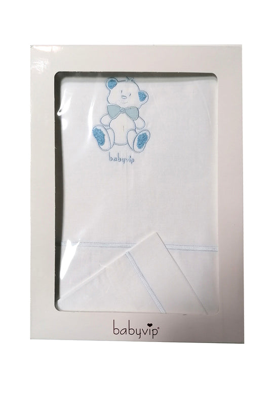 Set lenzuola 3 pezzi per carrozzina e culletta con ricamo orsetto