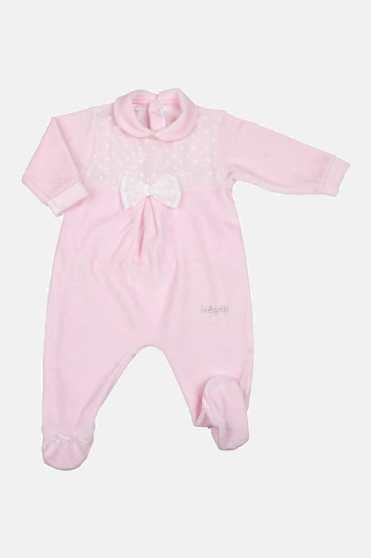Tutina in cotone elasticizzato con applicazione fiore e fiocco