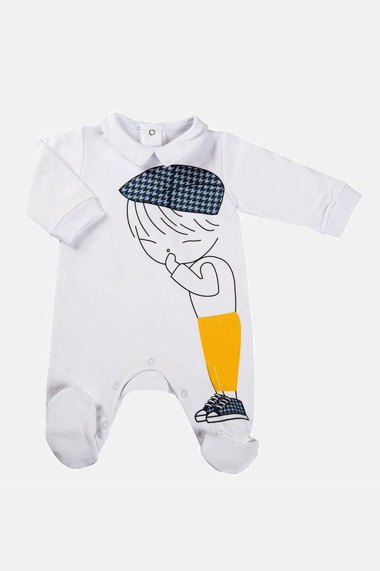 Pagliaccetto con stampa coniglietto e risvolti manica rigati.