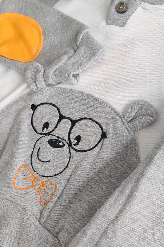 Completo 2 pezzi in felpa garzata con ricamo su tascone e cappuccio