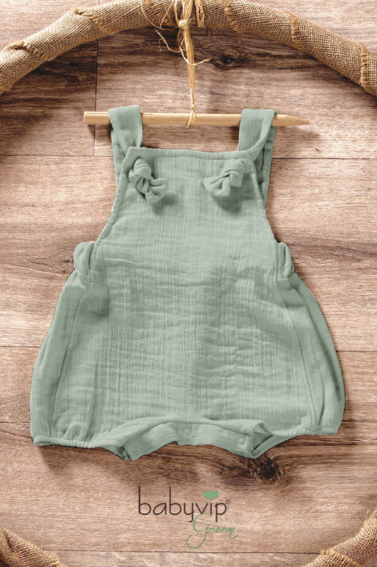 Pagliaccetto modello salopette in cotone organico con bretelle regolabili da nodo