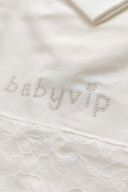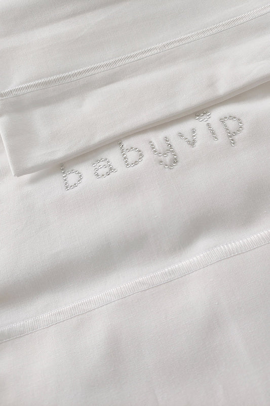 Set lenzuola 3 pezzi per carrozzina e culletta con scritta strass