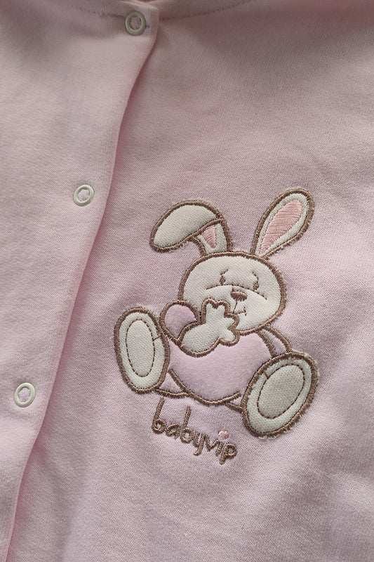 Pagliaccetto in cotone piquet elasticizzato con ricamo orsetto