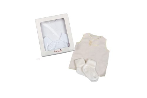Set camicina fortuna in cotone batista con ricamo "fortuna" e calzini in 100% cotone