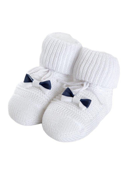 Scarpina neonato in cotone mercerizzato con applicazione fiocco