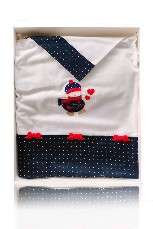 Set lenzuola 3 pezzi per carrozzina e culletta con pupazzetto e fiocchi