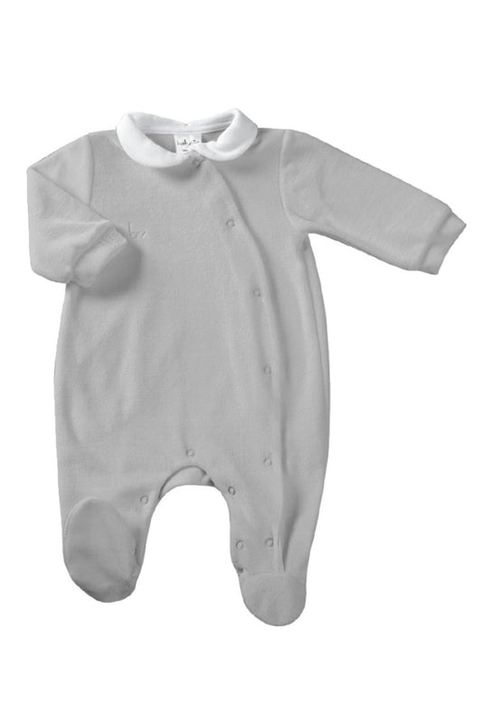 Tutina in ciniglia con apertura anteriore e ricamo lato cuore