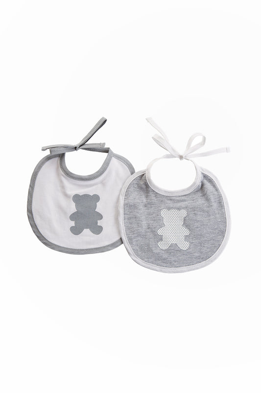 Lotto 2 pezzi: bavette con stampa orsetto e profili in contrasto