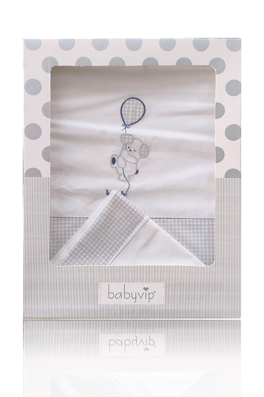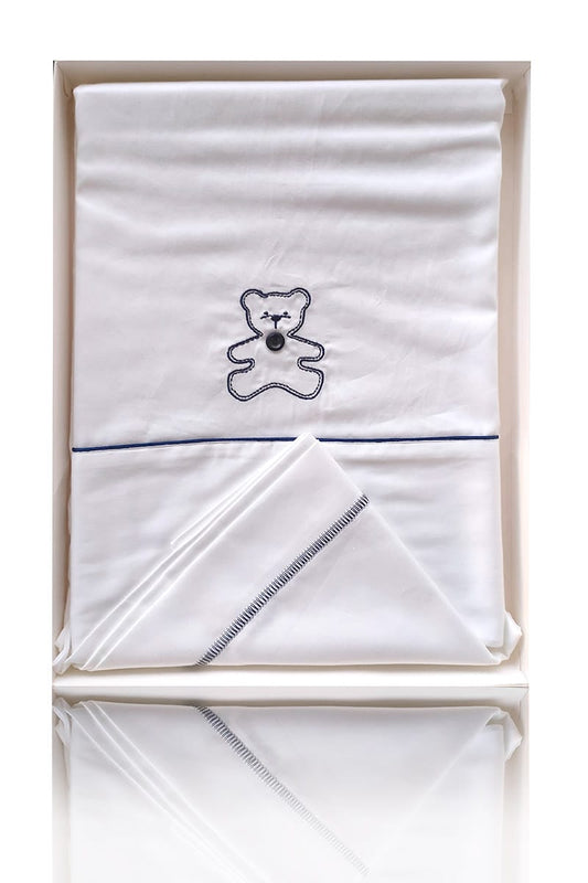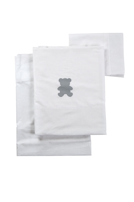 Set lenzuola 3 pezzi per carrozzina e culletta con ricamo orsetto