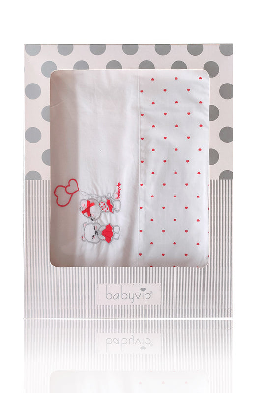 Set lenzuola 3 pezzi per carrozzina e culletta con ricamo orsetti e all over cuori