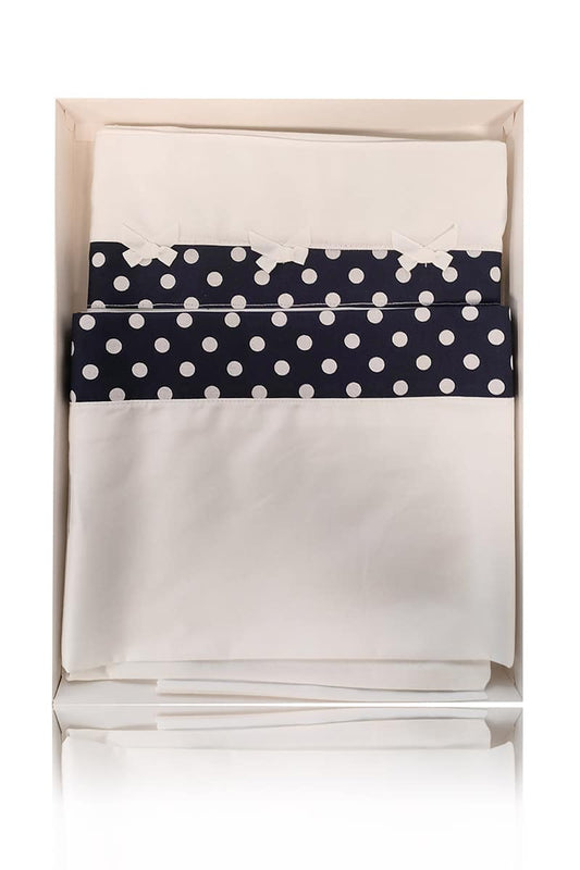 Set lenzuola 3 pezzi per carrozzina e culletta con pois e fiocchi