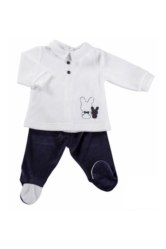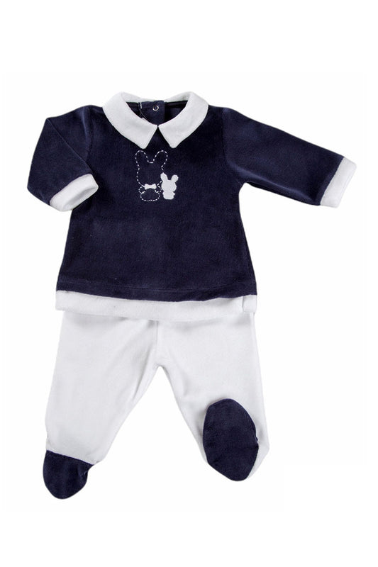 Completo 2 pezzi in ciniglia con ricamo ed inserti in contrasto