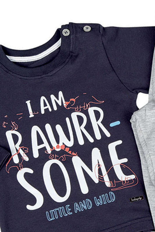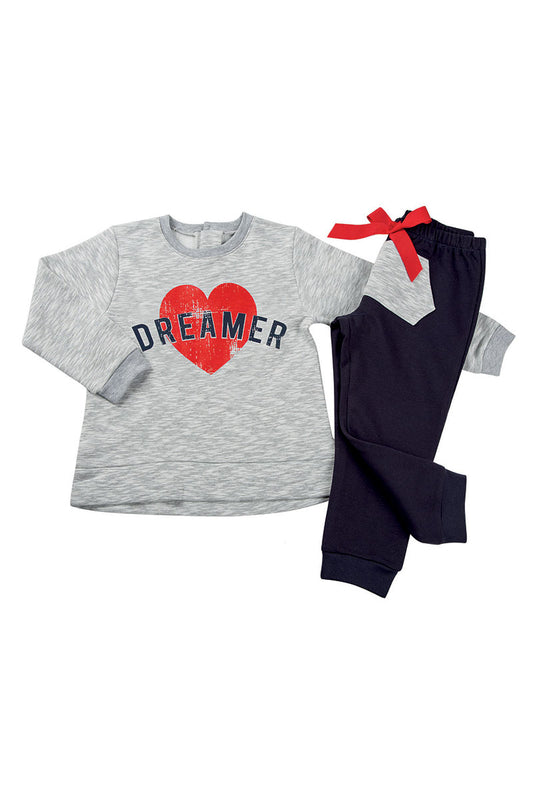 Completo in cotone elasticizzato garzato con stampa e maniche raglan