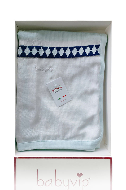 Copertina in ciniglia con ricamo e bordo in contrasto