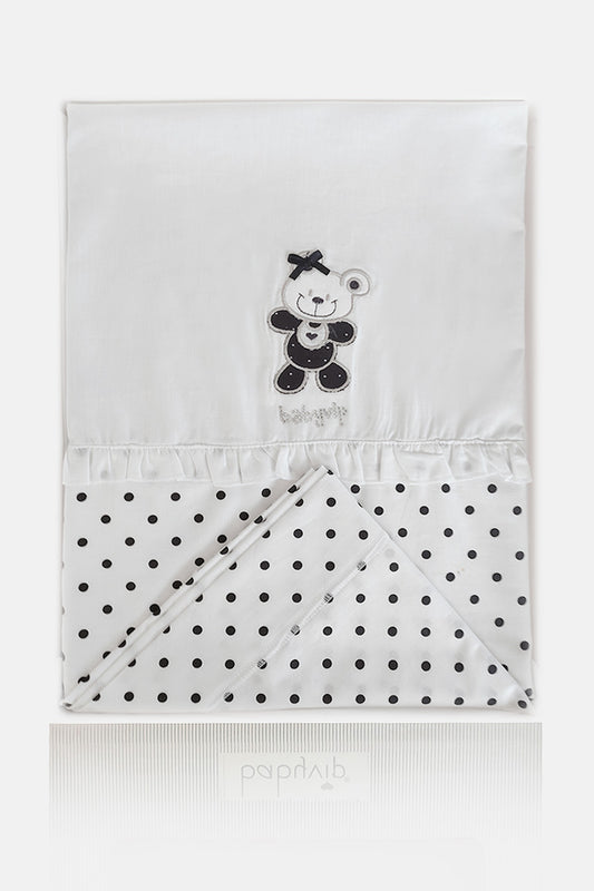 Copertina in in felpa garzata con inserto a pois e fiocchi applicati