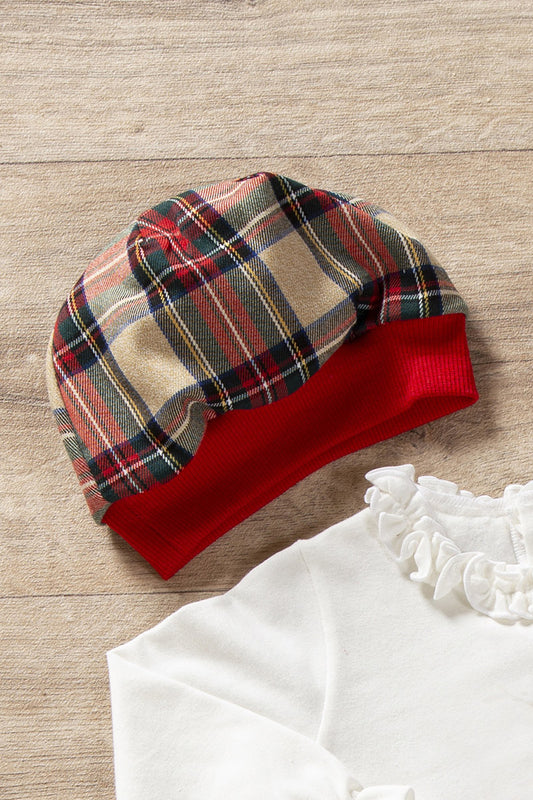 Cappellino neonata in ciniglia con rouches in flanella scozzese