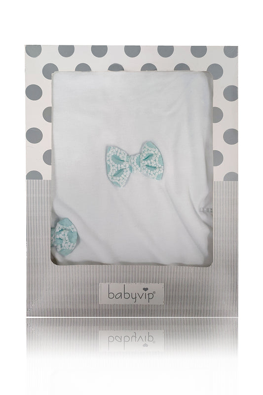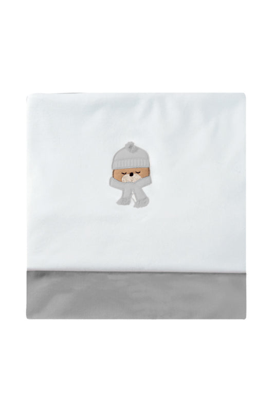 Copertina in piquet con stampa orsetto e inserti fantasia pulmini