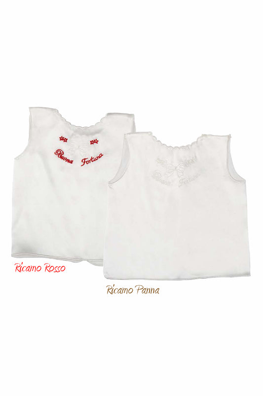 Camicina della fortuna smanicata in seta con ricamo