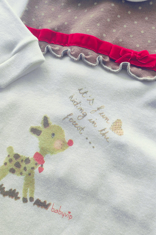 Tutina in caldo cotone con stampa e fiocchetti