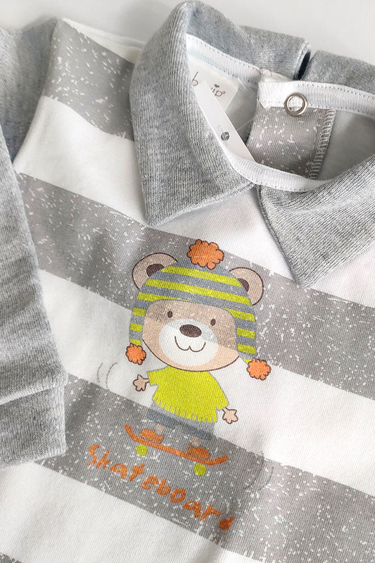 Pagliaccetto mezza manica rigato in cotone con ricamo Babyvip