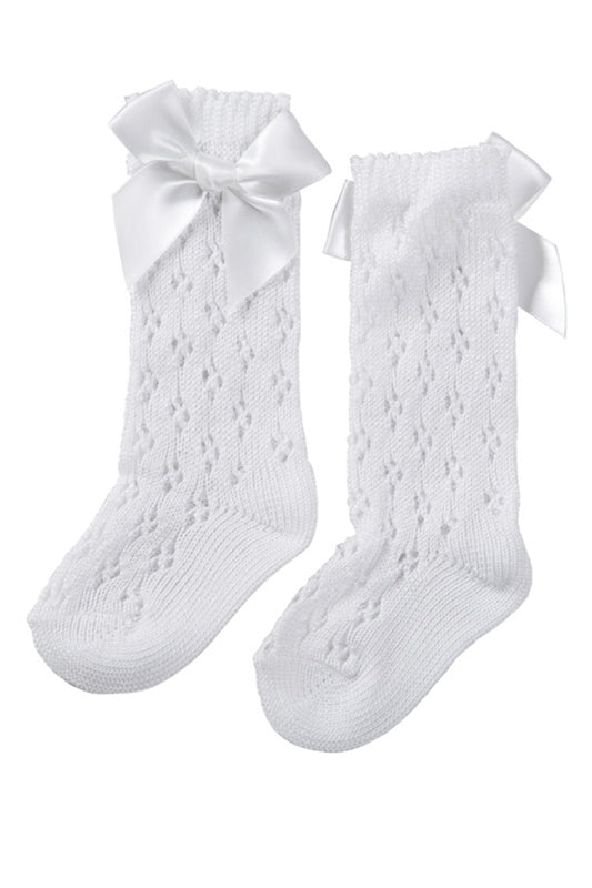 Calzino gambaletto traforato con applicazione e fiocco in cotone mercerizzato