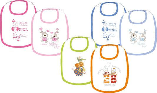 2 Bavettoni con stampa in morbida spugna con elastico e strato interno impermeabile