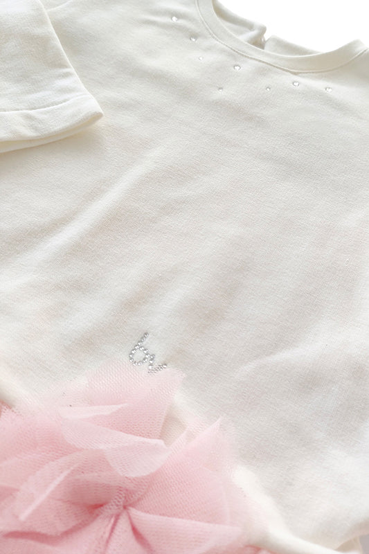 Vestitino in felpa garzata con inserti in tulle e strass