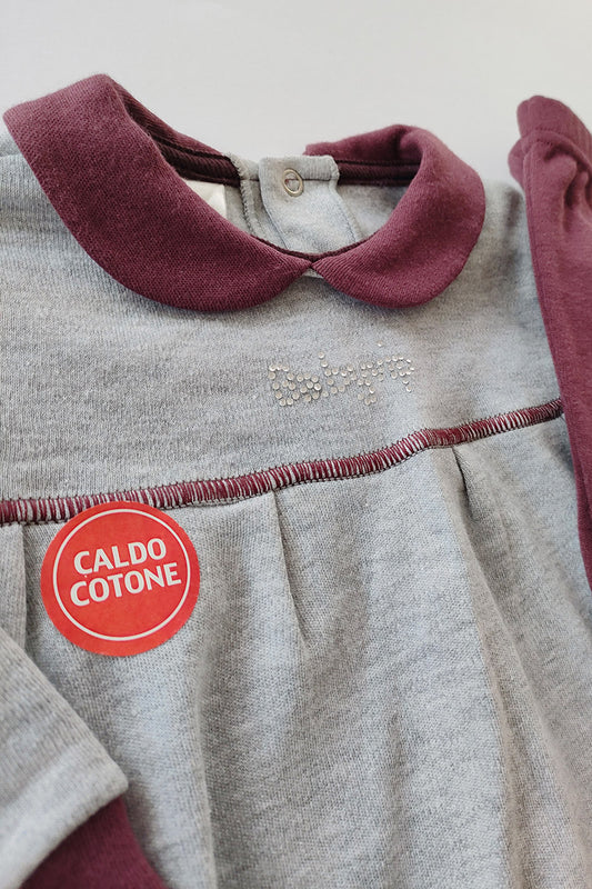Completo maglia e leggings in cotone elasticizzato garzato con stampa