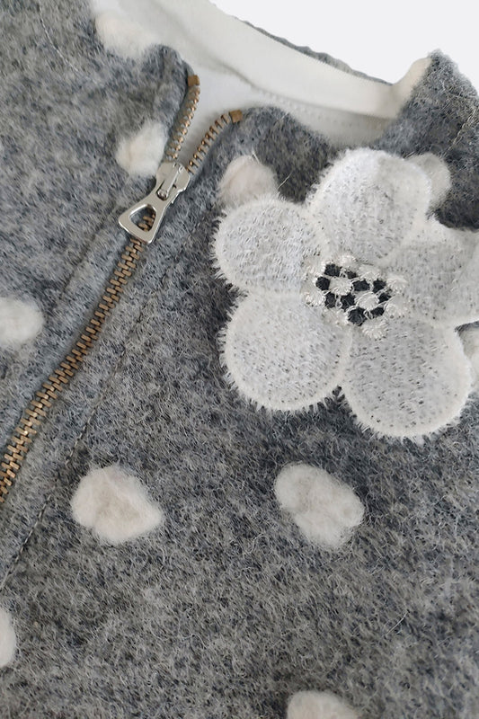 Giacchino in lana e felpa garzata con applicazione fiore e chiusura zip