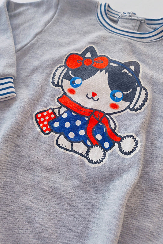Vestitino in felpa di cotone garzato con stampa gattino