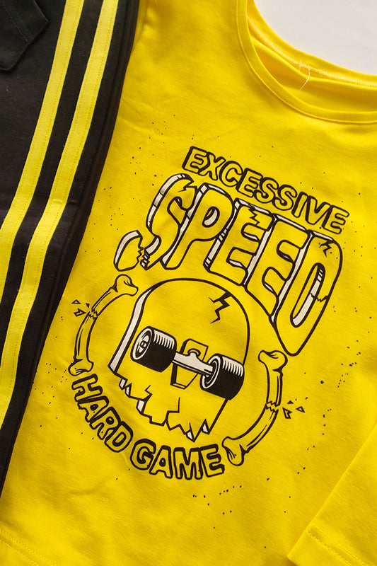Completo in cotone elasticizzato con stampa e pantaloncino in contrasto