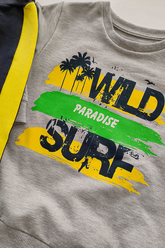 Completo in felpina con stampa e pantalone con inserto laterale in contrasto