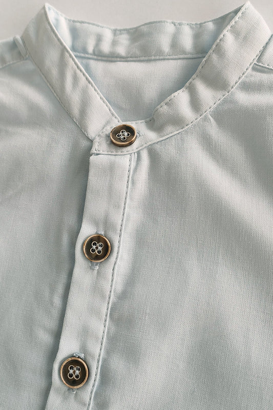 Completo 2 pezzi camicia in tela di cotone con collo alla coreana + pantalone con risvolto