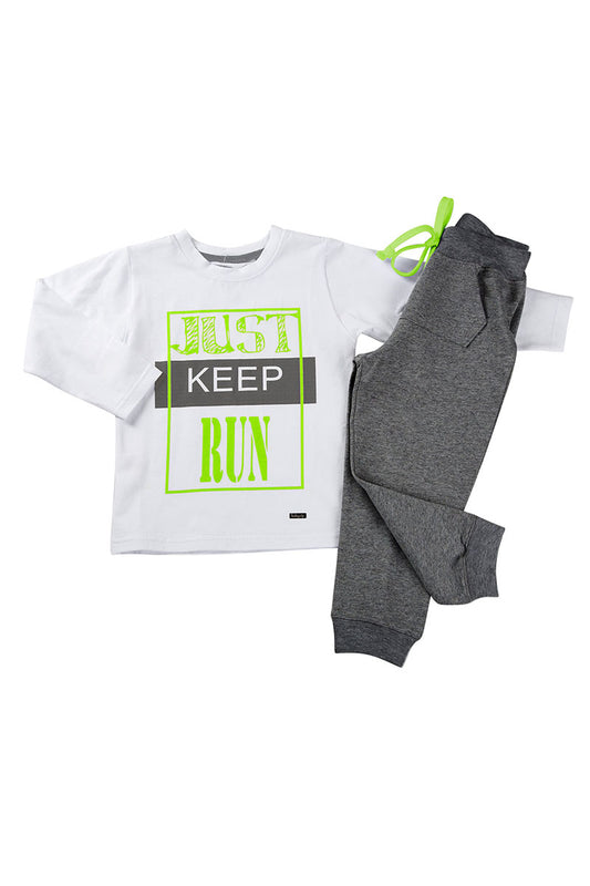 Completo manica lunga in cotone elasticizzato con stampa e pantalone in felpina