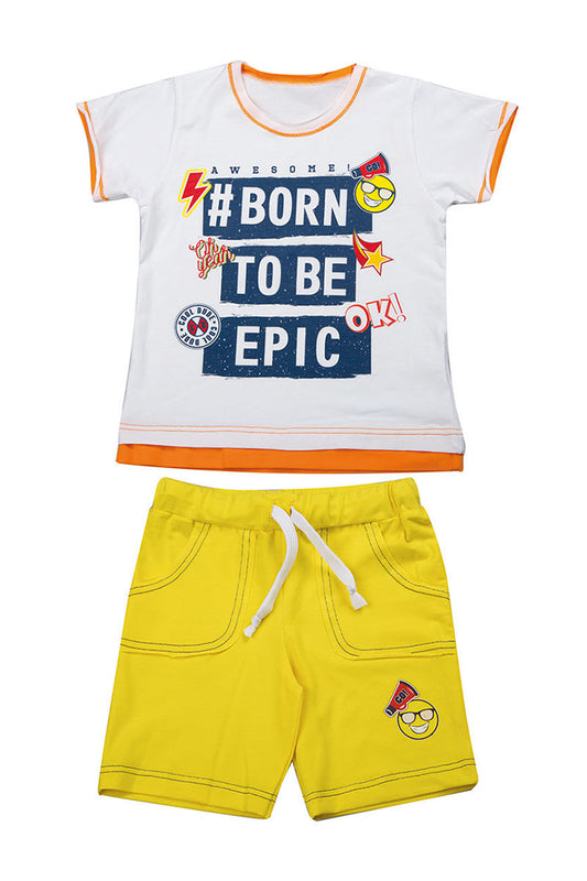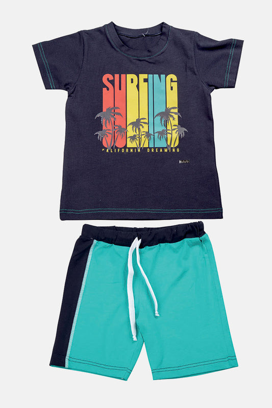 Completo mezza manica in cotone con stampa e pantaloncino con risvolti e stampa laterale