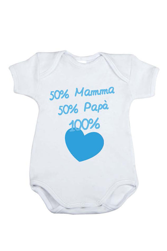 Body mezza manica in cotone con stampa "50% mamma 50% papà 100% Cuore"