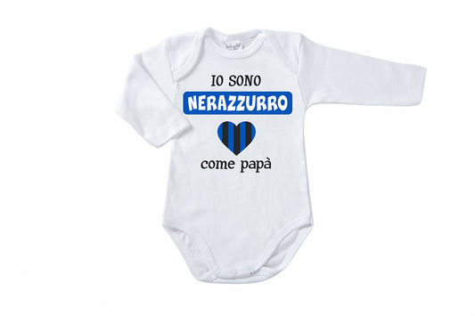 Body manica lunga in cotone con stampa "io sono nerazzurro come papà"