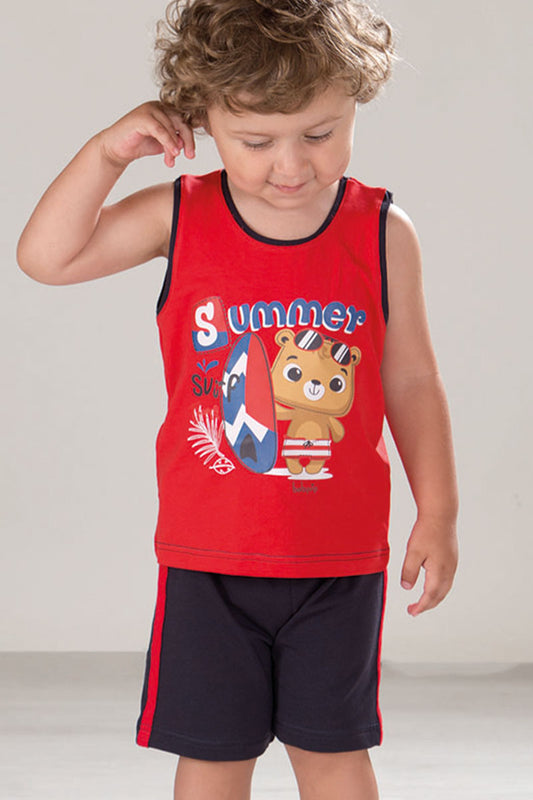 Completo in cotone elasticizzato con stampa e pantaloncino con fascia in contrasto