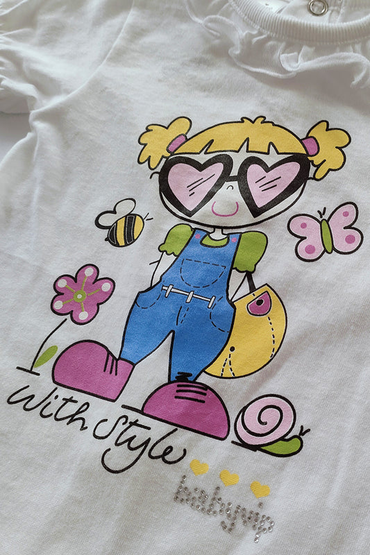 Pagliaccetto mezza manica in cotone con rouches - strass e stampa