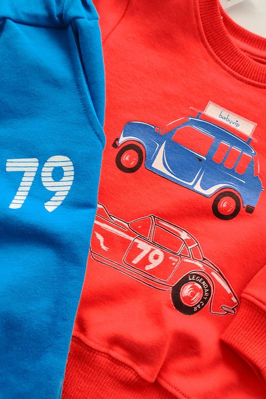 Completo in felpina con stampa e pantalone in contrasto con stampa laterale, tasche e polsi sul fondo