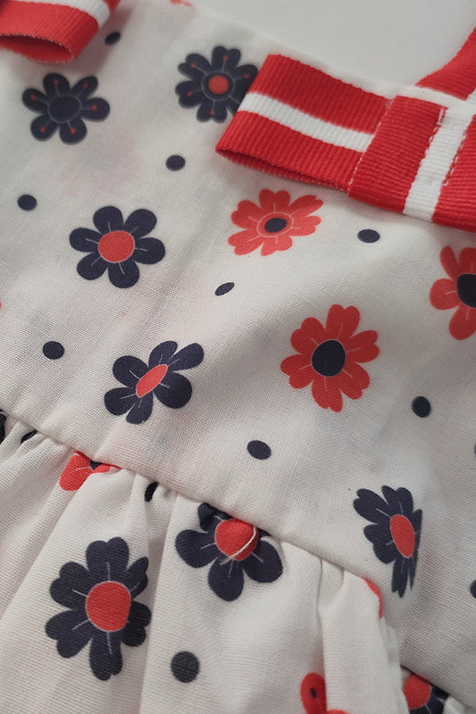 Pagliaccetto in tela di cotone fantasia floreale con fiocco applicato