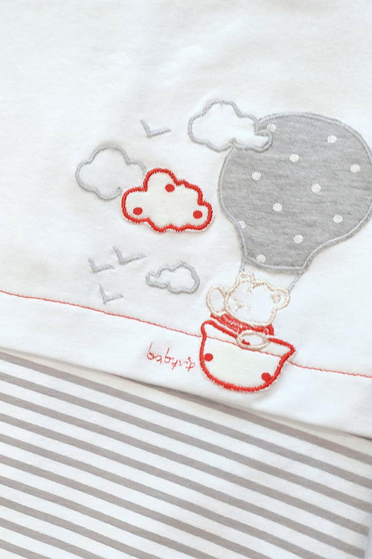 Completo 2 pezzi in cotone elasticizzato con inserto rigato - profili in contrasto e ricamo