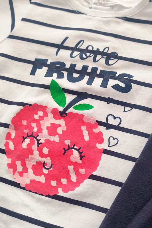 Completo 2 pezzi in cotone elasticizzato rigato con stampa