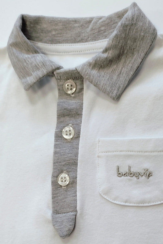 Pagliaccetto mezza manica in cotone elasticizzato con con inserti in contrasto e ricamo