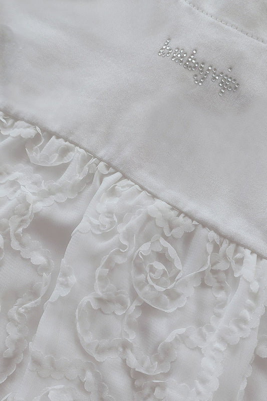 Pagliaccetto spalla larga in cotone makò con nastro applicato con rose in tulle e strass