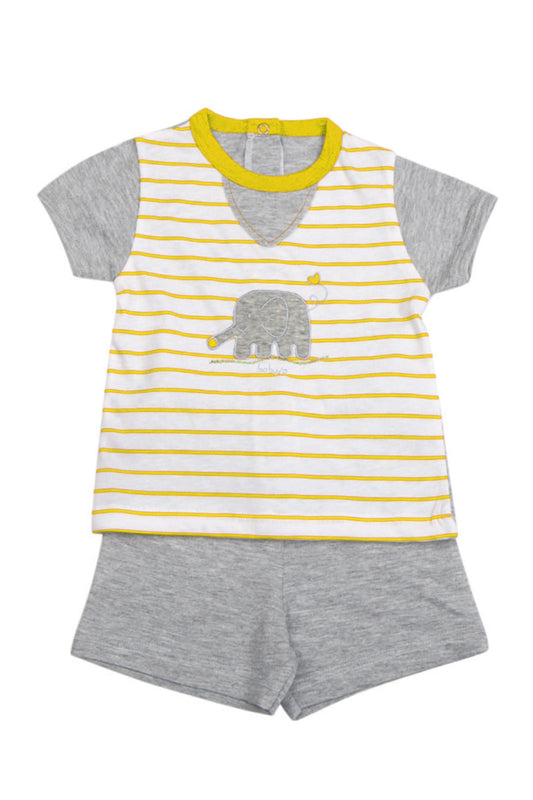 Completo corto 2 pezzi in jersey rigato con ricamo elefantino